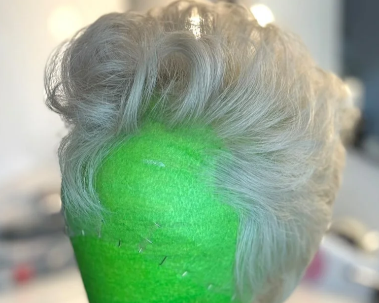 Process photos of wig build from a personal project, Mr.Krabs, The Fairy Godmother and Roger.